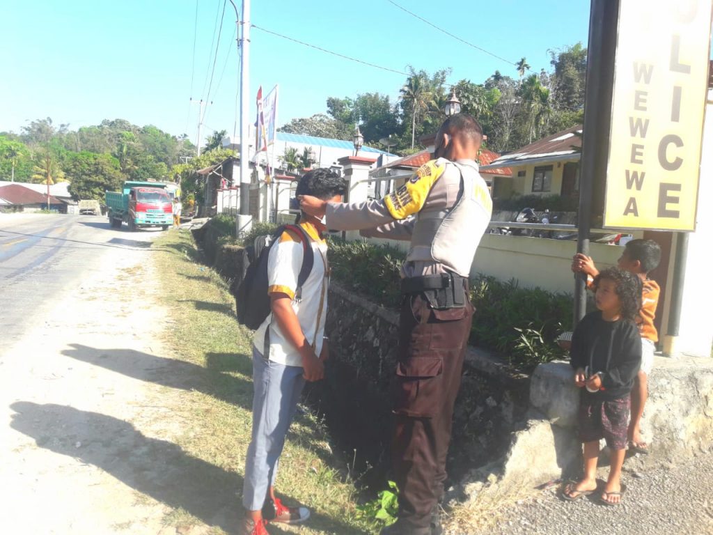 Kapolsek Wewewa Barat selaku Tim Gugus Tugas Covid-19 Kecamatan Wewewa Barat melakukan juga melakukan sosialisakan Peraturan Bupati Nomor 36 tahun 2020 ke sekolah- sekolah maupun lingkungan masyarakat.