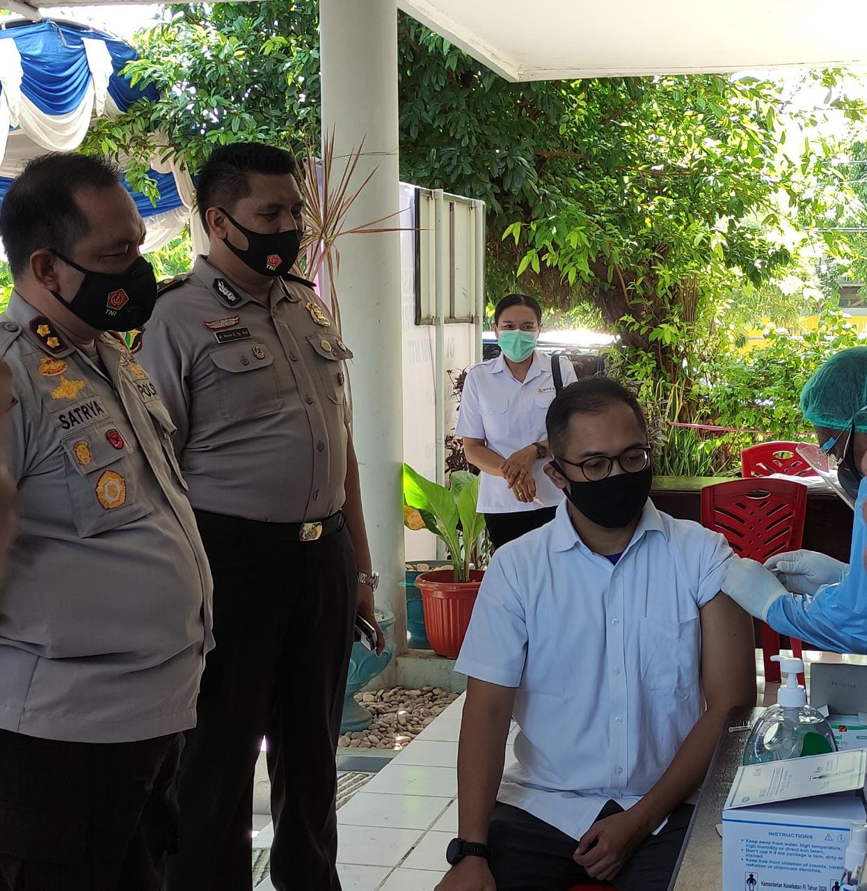 Vaksinasi Tahap I dibantu Puskemas Oepoi dan Puskesmas Oebobo dan 30 personel Polres Kupang Kota serta Bidokkes Polda NTT