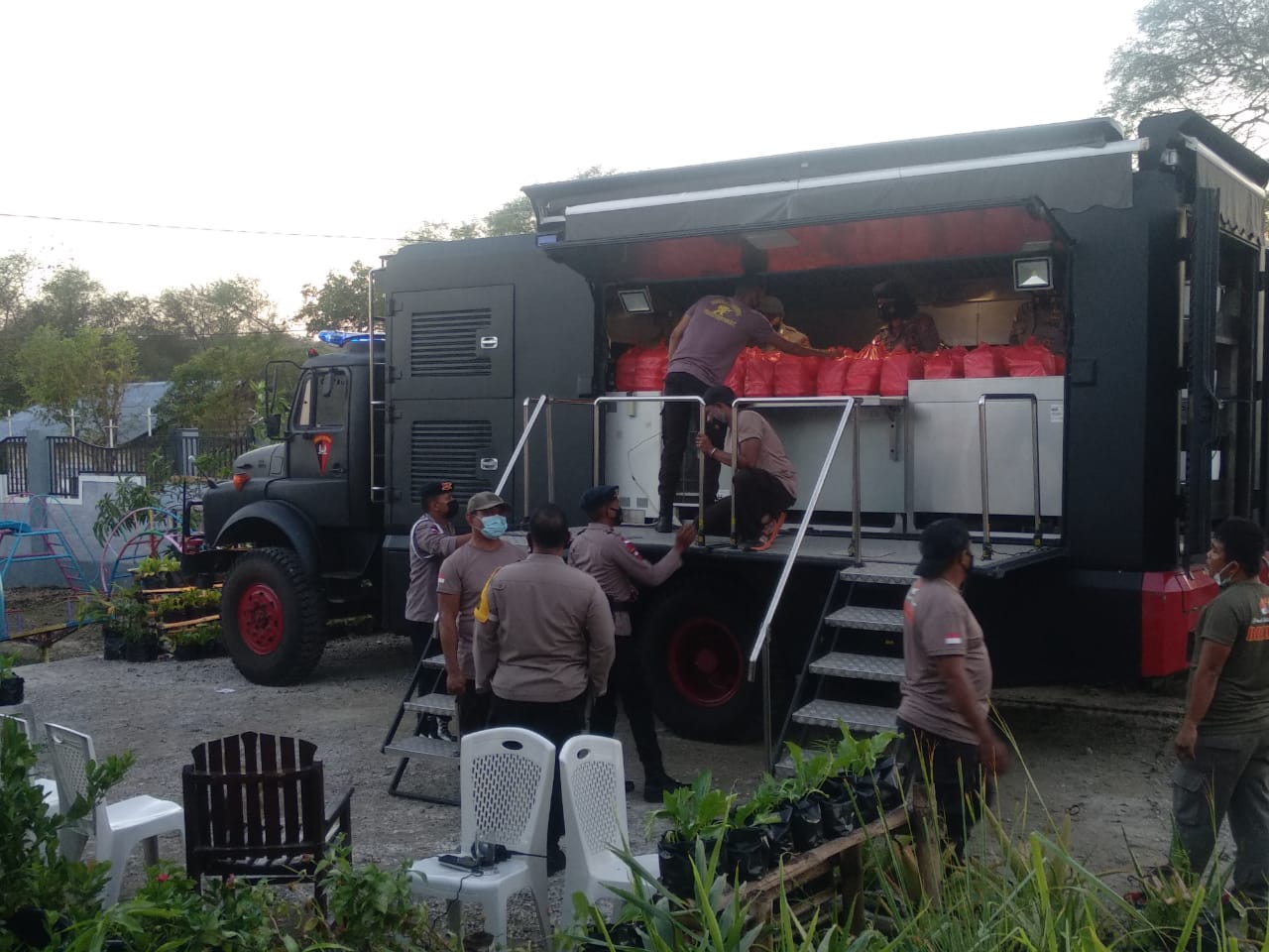 Bantuan dapur umum dipantau langsung oleh Irwasda Polda NTT Kombes Pol. Drs. Tavip Yulianto didampingi Kapolres Kupang Kota AKBP Satrya Perdana P.T. Binti.