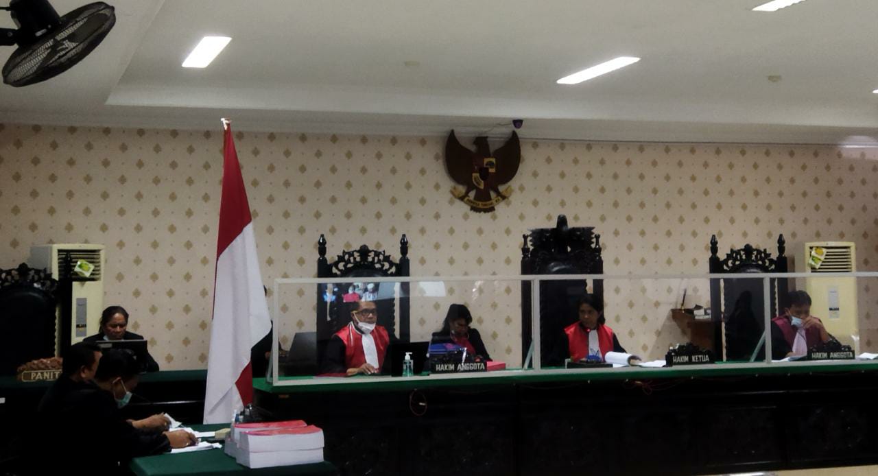Sidang ini dipimpin Ketua Majelis Hakim, Fransiska Paula Nino didampingi Hakim Anggota Nggilu Liwar Awang dan Gustaf Marpaung. Turut hadir tim JPU yang diketuai Herry C. Franklin.