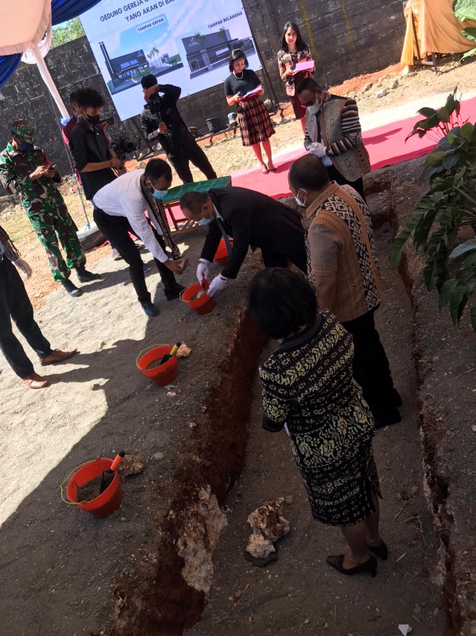 Mewakili Gubernur NTT, Staf Ahli Bidang Kesra, Erni Usboko memberikan suport bagi jemaat gereja C3 Pemulihan Kupang agar jangan patah semangat dalam pembangunan gereja di masa pandemi ini.