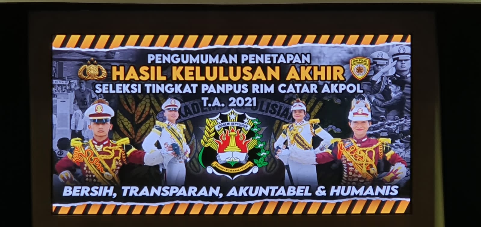 Kelulusan mereka disampaikan saat pengumuman penetapan hasil kelulusan akhir seleksi tingkat pusat penerimaan Catar Akpol TA 2021, Kamis (29/7/2021) di gedung Auditorium Graha Cendekia Akpol Lemdiklat Polri, Semarang-Jawa Tengah.