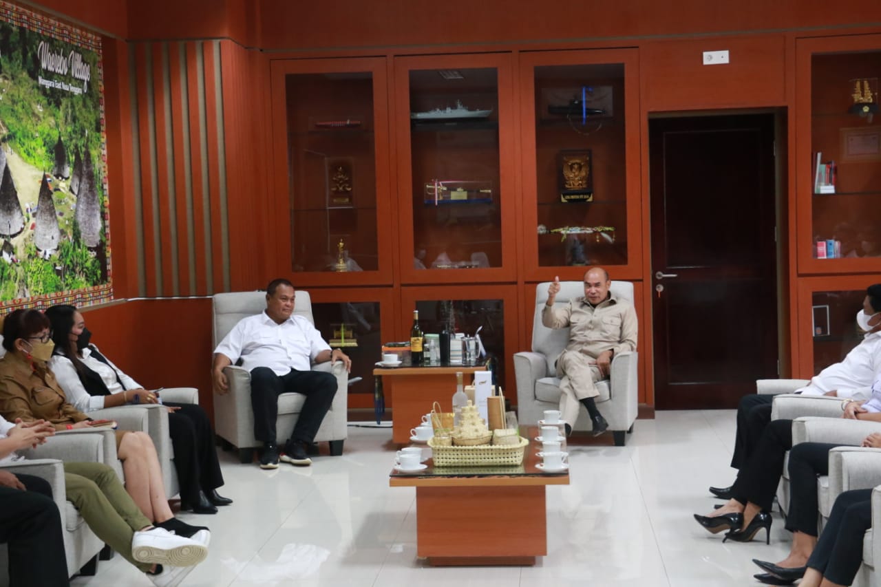 Gubernur NTT, Viktor Bungtilu Laiskodat, di ruang kerja, Senin (7/2/2022) saat menerima rombongan pengurus Asprov PSSI NTT periode 2022-2026 yang dipimpin Christian Mboeik.
