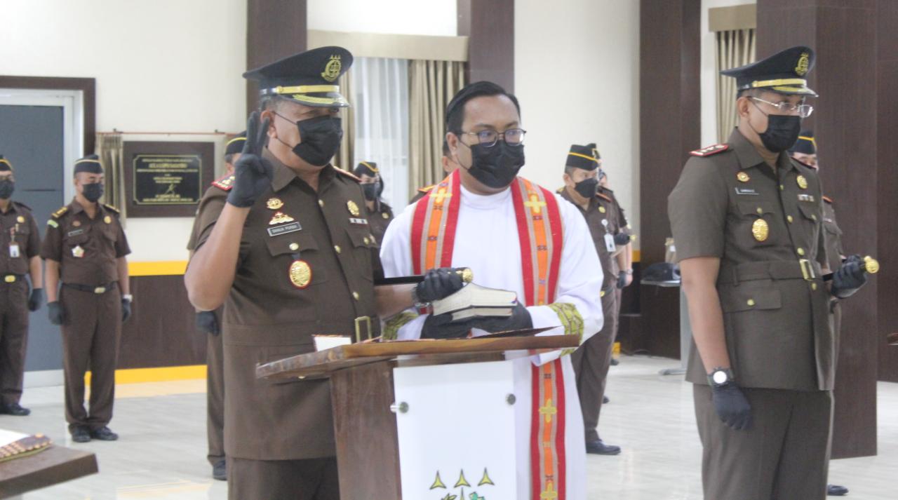 KUPANG, PENATIMOR – Kajati NTT Hutama Wisnu melantik pejabat baru Wakajati NTT, Asisten Datun, Asisten Pengawasan, Kajari Kota Kupang, Kajari Rote Ndao, Kajari Alor dan Kajari Belu.