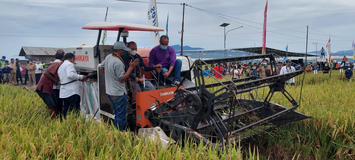 Panen padi secara simbolis dilakukan gubernur didampingi Bupati Manggarai Barat, Edi Endi dengan menggunakan kendaraan khusus pemotong padi.
