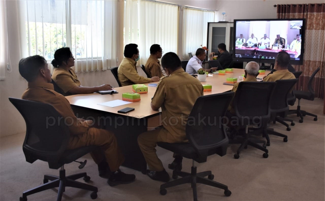 Penjabat Wali Kota Kupang, George Hadjoh, bersama sejumlah pimpinan perangkat daerah di lingkungan Pemerintah Kota Kupang mengikuti sosialisasi aplikasi B’pung Petani, melalui aplikasi zoom meeting di ruang kerja Wali Kota Kupang, Senin (29/8/2022).