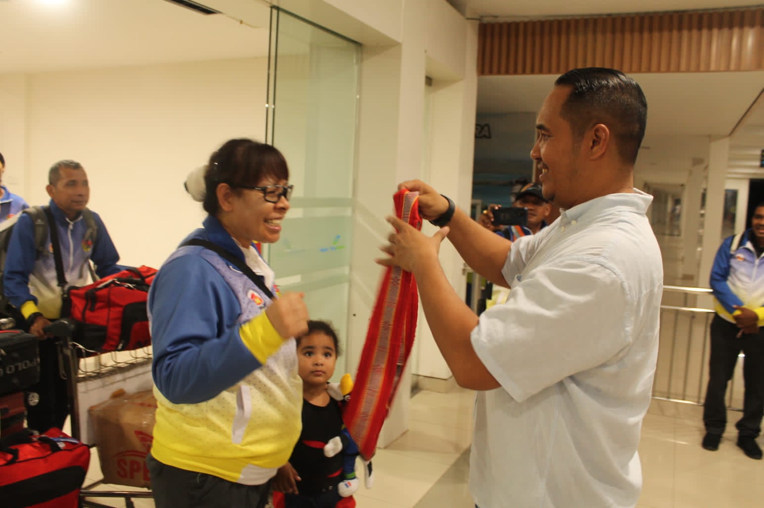 Kontingen disambut dengan pengalungan selendang oleh Wakil Ketua Umum (Waketum) Asprov PSSI NTT Ridwan Sujana Angsar, SH.,MH., di Bandara El Tari Kupang, Jumat (16/9/2022) malam tadi.
