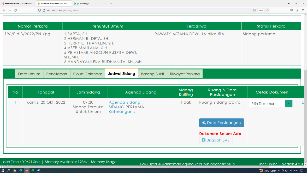 Informasi mengenai sidang perdana Ira Ua ini disampaikan melalui website PTSP Pengadilan Negeri Kelas 1A Kupang dengan perkara Nomor 196/Pid.B /2022/PN Kupang.