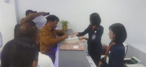 Penjabat Wali Kota Kupang George Hadjo saat membuka rekening Bank NTT di KCP Oesapa.