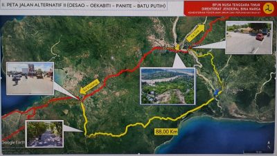 KUPANG, PENATIMOR – Balai Pelaksanaan Jalan Nasional (BPJN) Nusa Tenggara Timur (NTT) berencana membuka jalan alternatif pasca longsor pada Km72 ruas Bokong-Batu Putih di Kecamatan Takari, Kabupaten Kupang.