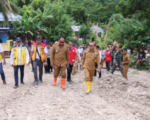 KUPANG, PENATIMOR – Wakil Gubernur NTT Josef Nae Soi (JNS) meninjau lokasi bencana longsor di Kecamatan Takari Kabupaten Kupang pada Senin (20/2/2023).