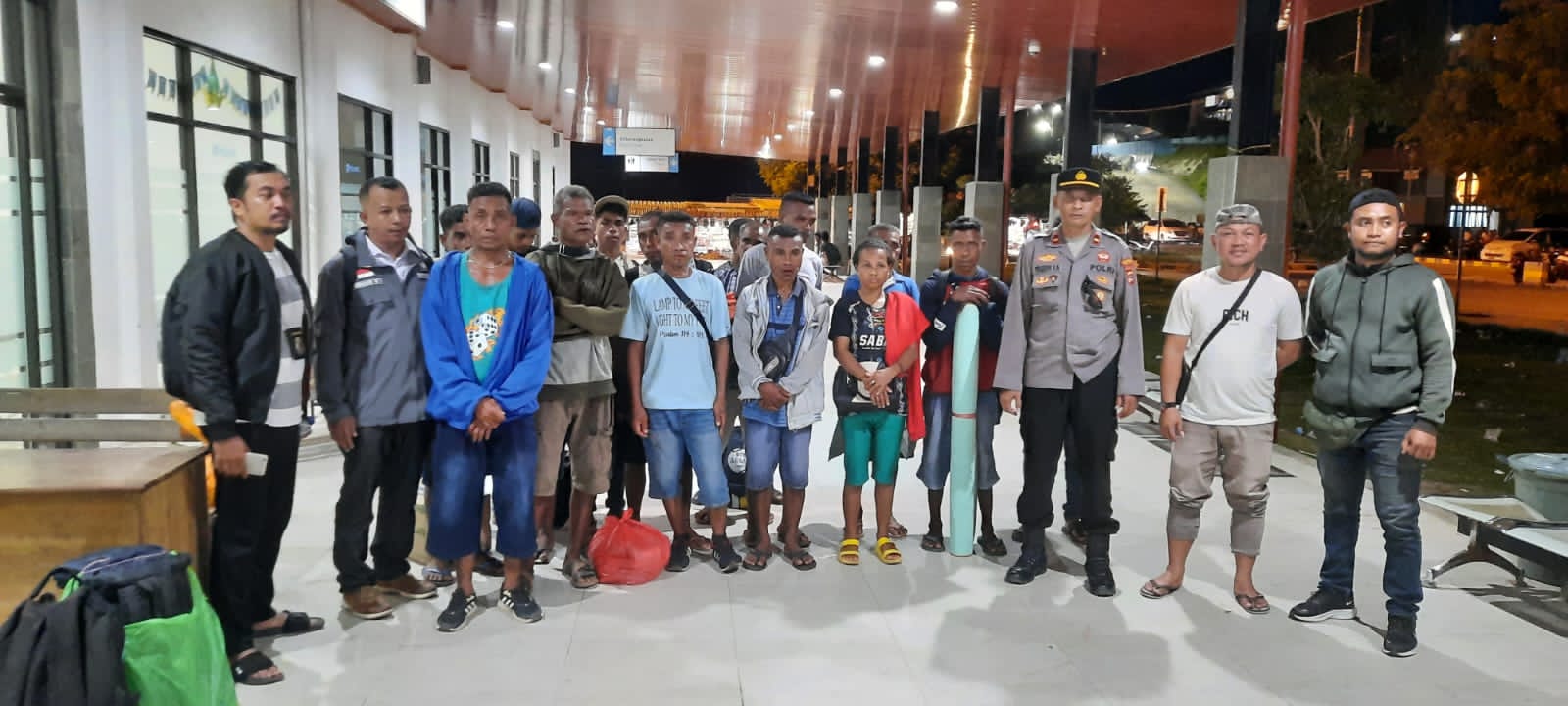 Polisi dan tim Satgas PPMI langsung mengamankan 15 orang dan 1 orang perekrut beserta KTP dan tiket keberangkatan kapal laut Bukit Siguntang.