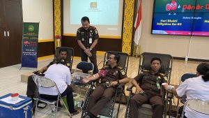 Asisten Bidang Tindak Pidana Khusus (Aspidsus), Ridwan Sujana Angsar, SH.,MH., dan beberapa pejabat setingkat Koordinator dan Kepala Seksi, tampak ikut berpartisipasi dalam donor darah tersebut.
