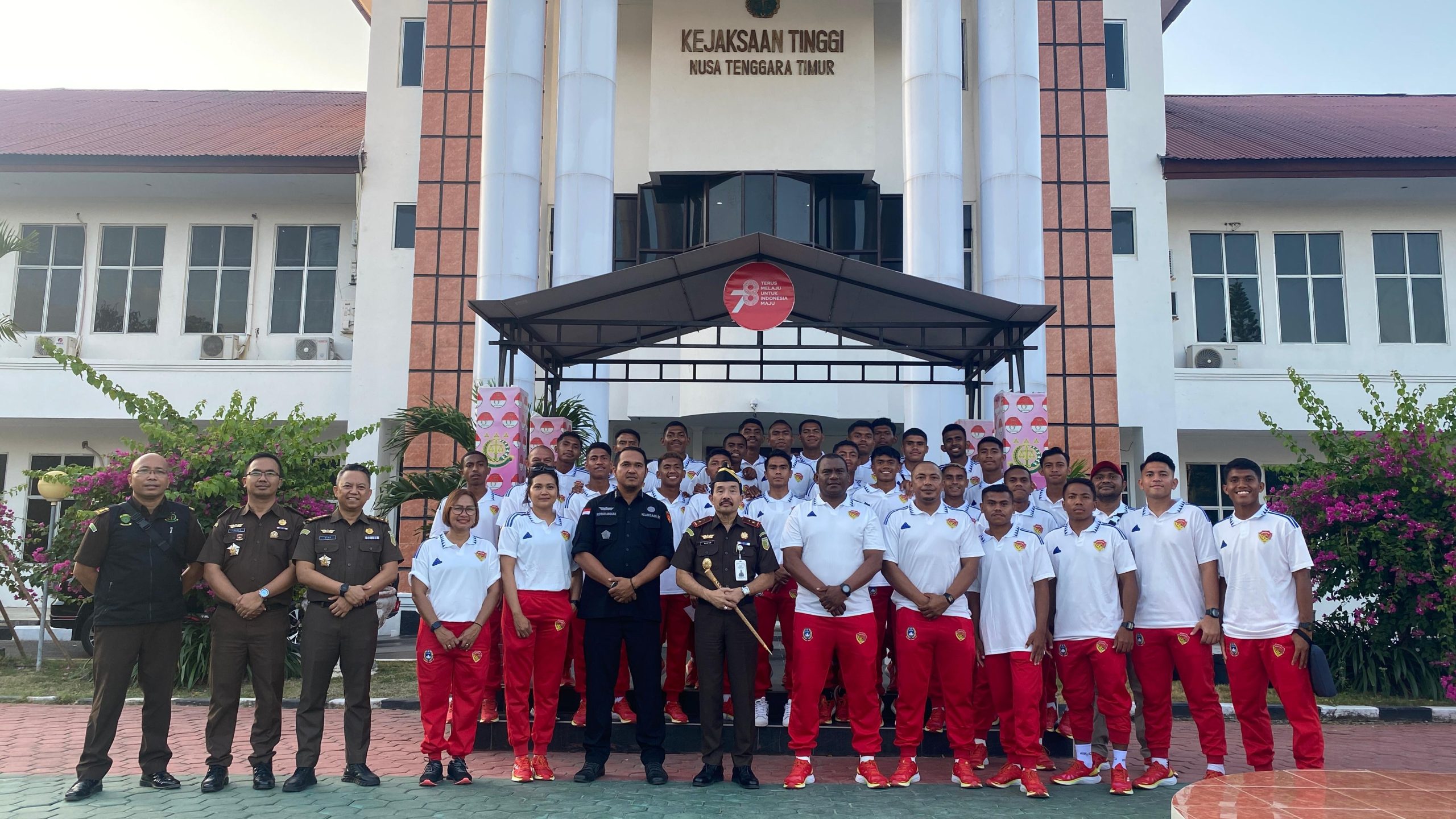 Kajati NTT Hutama Wisnu, SH.,MH., berpose bersama tim sepakbola NTT untuk Pra PON 2023.