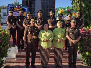 Di antara barisan yang mengikuti ziarah, terlihat Wakajati NTT N. Rahmat. R., S.H., M.H., serta para pejabat utama. Mereka berdiri dengan sikap penuh penghormatan, mencerminkan betapa pentingnya momen ini.