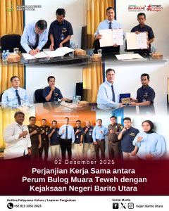 Sehari sebelumnya, Selasa, 2 Desember 2025 pukul 12.30 WIB, Kejari Barito Utara juga meneken Perjanjian Kerja Sama dengan Perum Bulog Muara Teweh yang dilaksanakan di Aula Perum Bulog setempat.