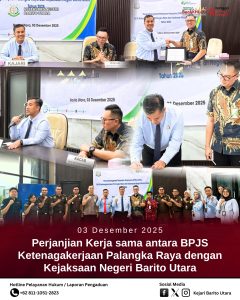 Pada Rabu, 3 Desember 2025 sekitar pukul 15.00 WIB, Kejari Barito Utara bersama BPJS Ketenagakerjaan Palangka Raya menandatangani Perjanjian Kerja Sama yang berlangsung di Aula Kejaksaan Negeri Barito Utara.