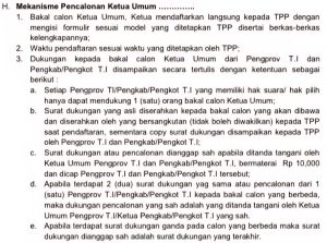 Khusus pada huruf H tentang mekanisme pencalonan Ketua Umum, aturan tersebut memuat tujuh poin utama, dan pada poin ketiga hanya terdapat huruf a sampai huruf e.