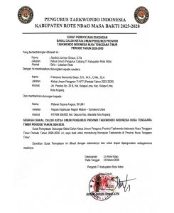 “Surat Pernyataan Dukungan Bakal Calon Ketua Umum Pengurus Provinsi Taekwondo Indonesia Nusa Tenggara Timur periode tahun 2026–2030 ini saya buat untuk mendukung kemajuan Taekwondo di Provinsi Nusa Tenggara Timur,” demikian tertulis dalam surat tersebut.