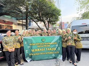 Dipimpin Ketua IAD Daerah Medan, Ny. Melani Ridwan Angsar, mereka mengenakan seragam batik hijau yang tampak serasi dan anggun. Kehadiran mereka menambah semarak suasana sore itu.