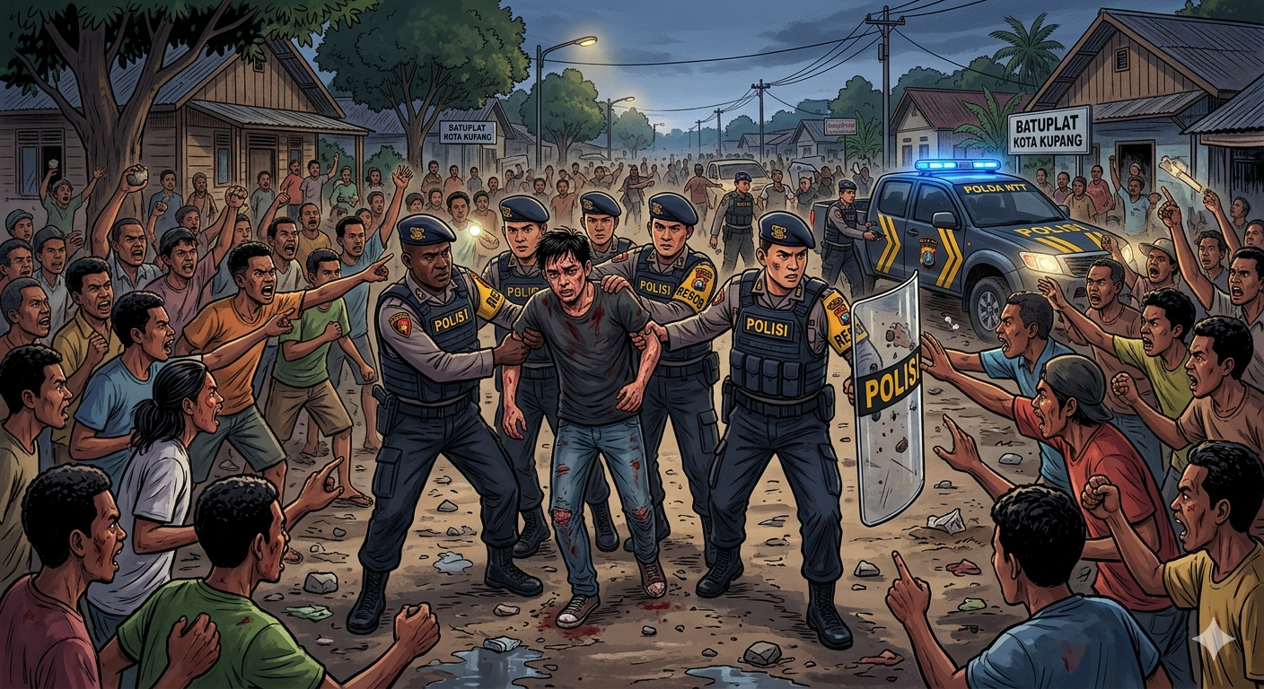 KUPANG, PENATIMOR – Aksi cepat aparat Kepolisian Daerah Nusa Tenggara Timur (Polda NTT) berhasil menyelamatkan seorang terduga pelaku dari amukan massa, sekaligus mengamankannya dalam kasus dugaan pemerkosaan terhadap perempuan penyandang disabilitas yang menggegerkan warga Batuplat, Kota Kupang, Sabtu (28/3/2026).