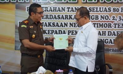 KEFAMENANU, PENATIMOR – Pihak Kejaksaan Negeri (Kejari) Kabupaten Timor Tengah Utara (TTU) menyerahkan Sertifikat Hak Guna Bangunan (SHGB) PT Timor Sarana Pembangunan Nekmese seluas 80 hektare...